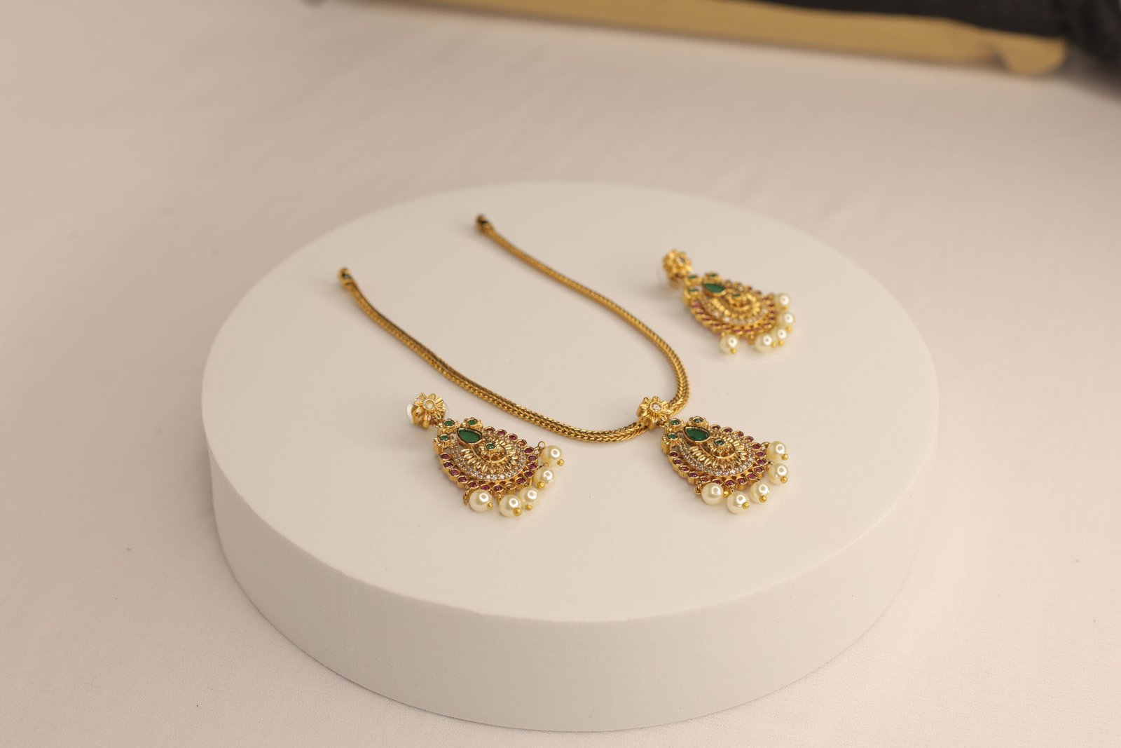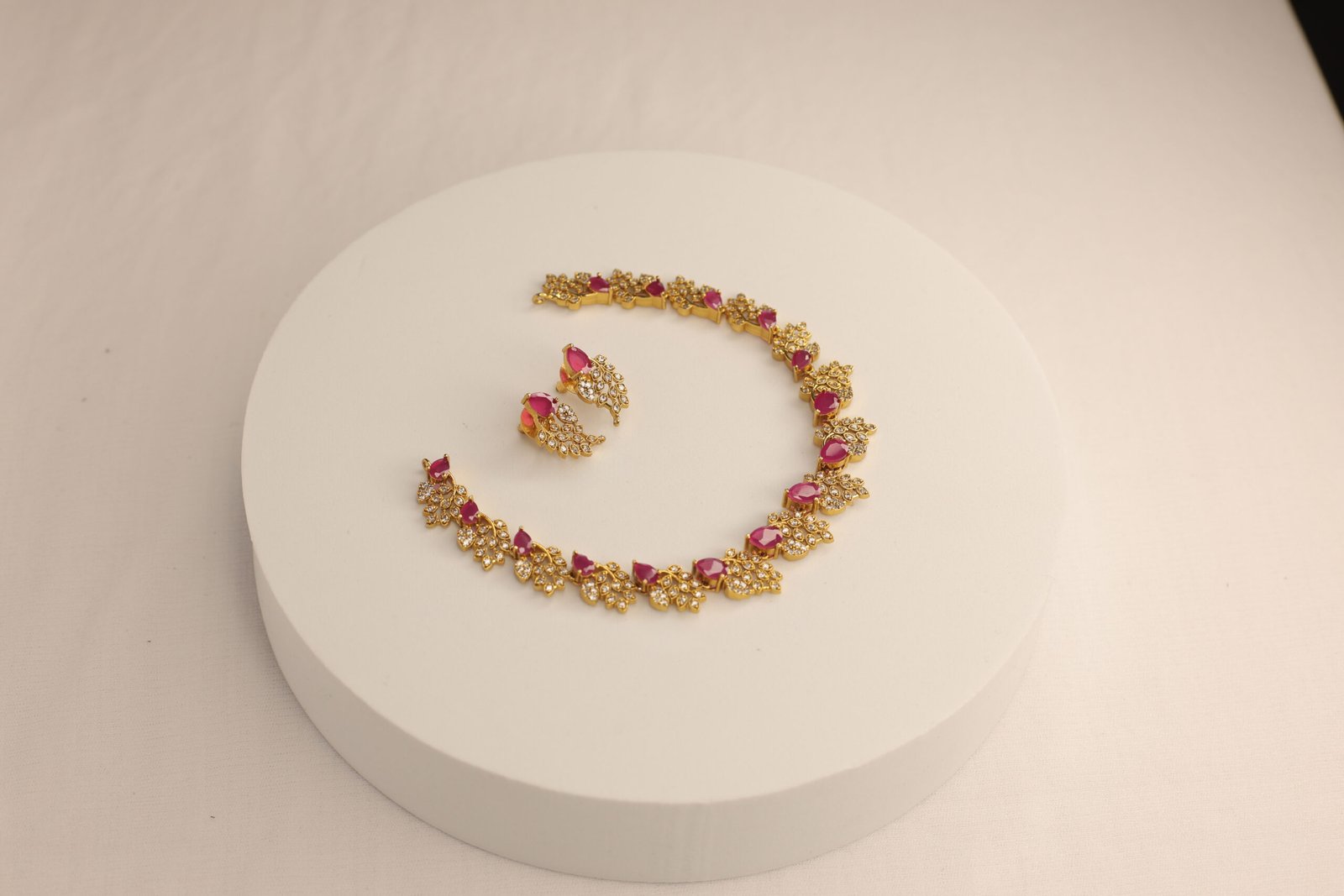 Elegant Gold-Plated Necklace Set with Ruby & CZ Stones β Includes Matching Earrings