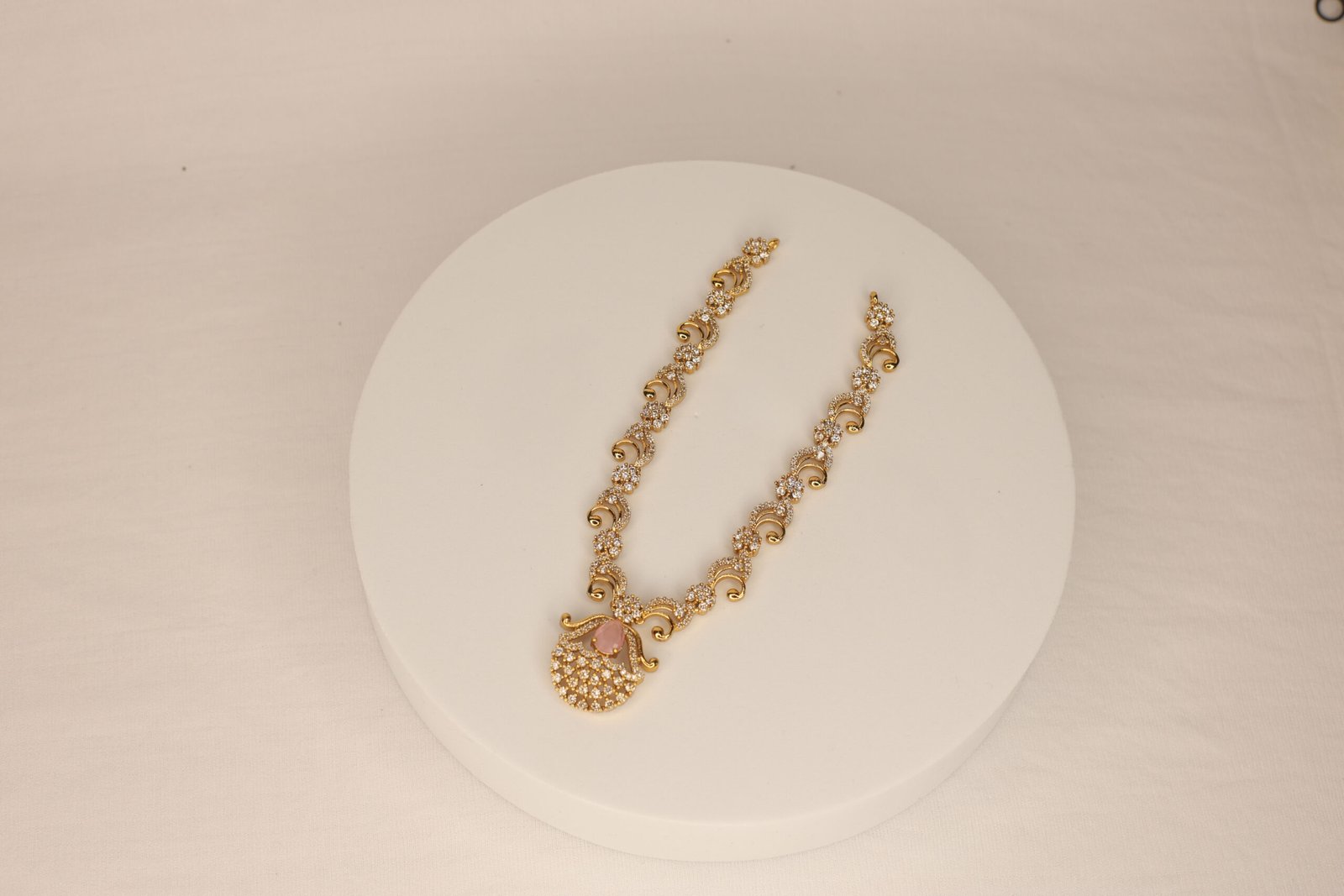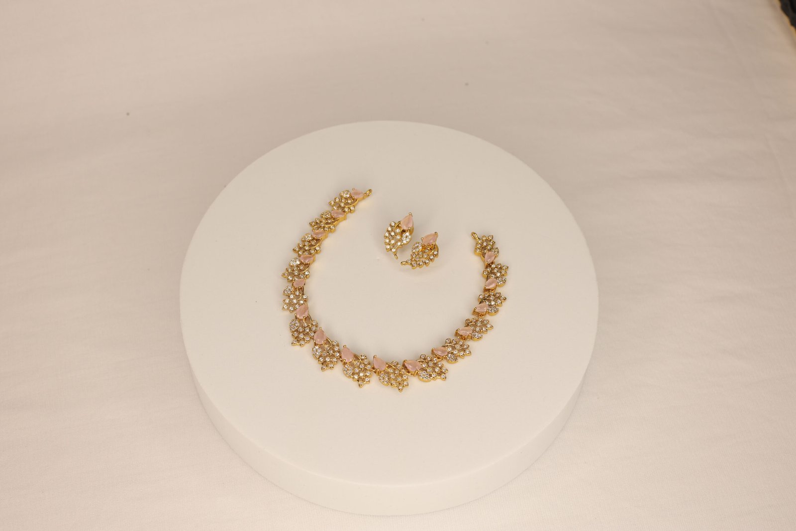 Grace meets glamourβadorn yourself with this stunning gold jewelry set featuring blush-pink elegance.