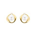 9ct Yellow Gold Fluid Pearl 0.04ct Stud Earrings