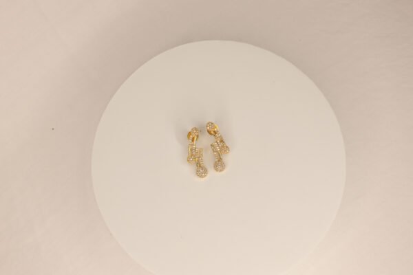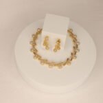 Elevate your style with this stunning gold-plated jewelry set that breathes sophistication and opulence into your wardrobe. Featuring a delicately crafted necklace and radiant diamond-encrusted earrings, this set shines with an unmistakable allure. Whether you’re attending a formal dinner, a wedding, or simply seeking to add a touch of glamour to your everyday wear, this jewelry is designed to command attention while complementing your individual style.