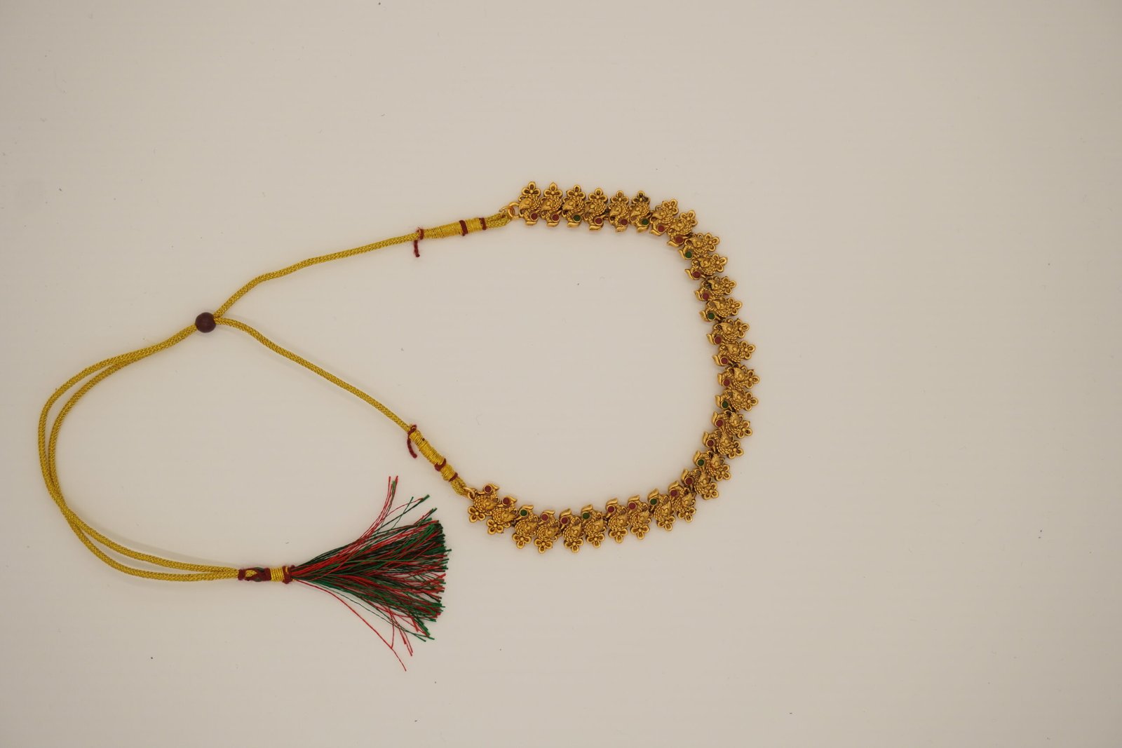 Design style: South Indian / temple jewellery floral pattern with bead drops.